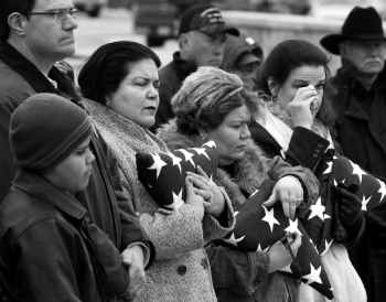 There was also a funeral volley and a flyover by three F-16 Falcons and an F-4 from Holloman Air Force Base, N.M., which broke from the formation and disappeared into the clouds as the jets passed overhead.
