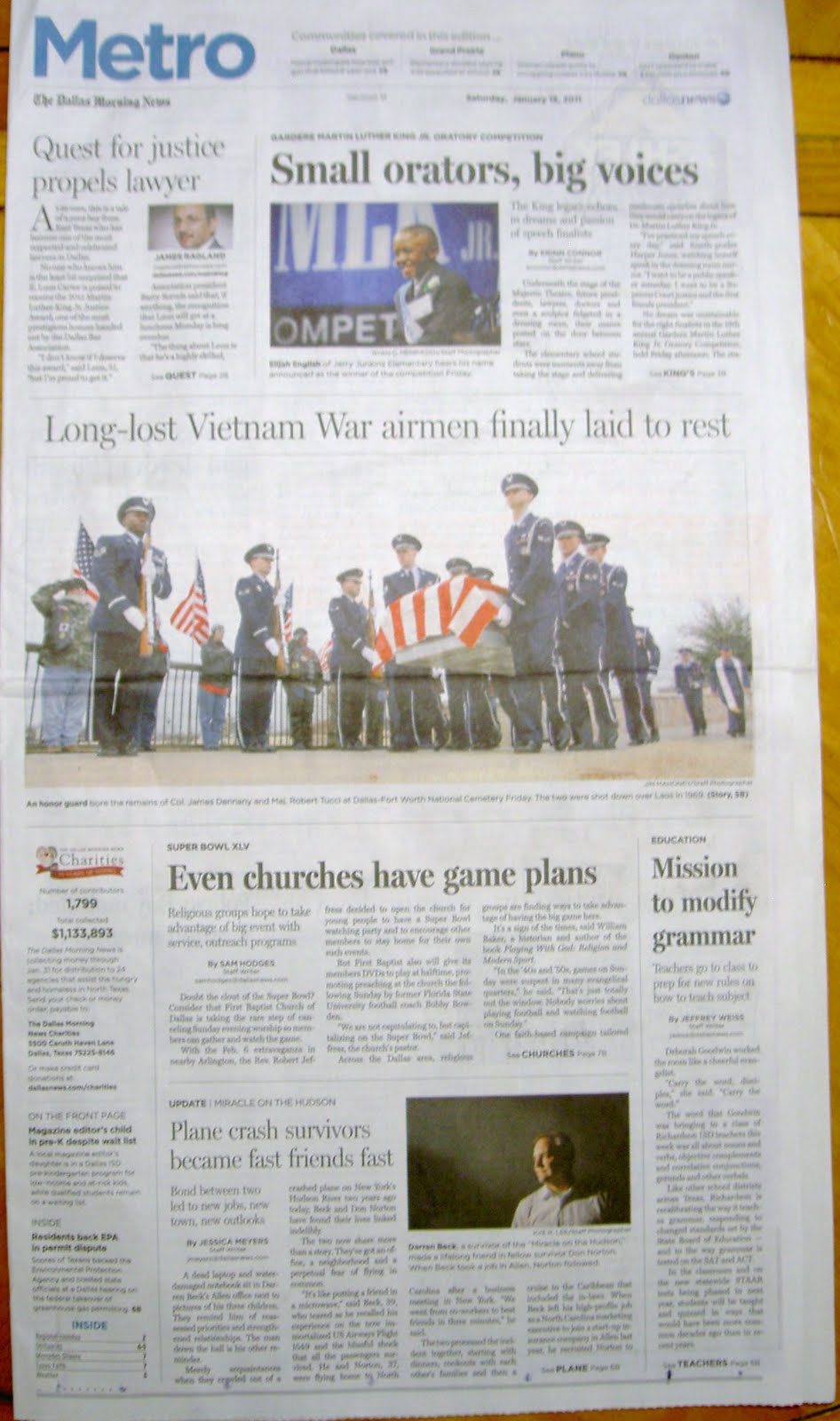 오늘자 달라스모닝뉴스 메트로란에 실린 기사를 소개합니다. 41년만에 미군의 유해를 찾아 고국으로 데리고 왔다는 기사입니다.