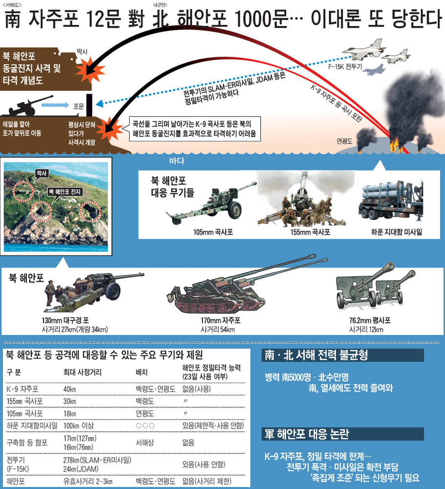 인터넷조선(펌)/자주포 12문 對 해안포 1000문… 이대론 또 당한다