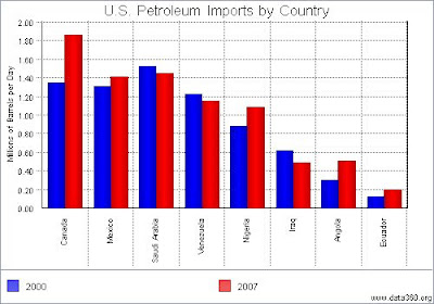미국의 국가별 석유수입 도표 (자료출처 http://www.data360.org/dsg.aspx?Data_Set_Group_Id=627 )